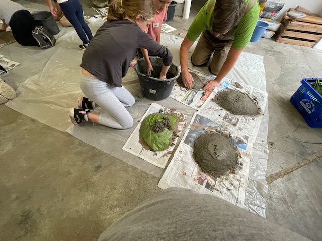 Ist es draußen heiß und trocken, finden Vögel häufig nicht mehr genügend Wasser. Natürliche Wasserstellen sind ausgetrocknet, Pfützen gibt es in dieser Zeit keine. Daher ist es wichtig, saubere Wasserquellen aufzustellen, wie z. B. eine Vogeltränke im Garten oder auf dem Balkon. Diese bietet nicht nur eine Erfrischung für verschiedene Vögel, sondern ist auch eine Freude für uns Menschen. Aus diesem Grund hat der OGV mit seinem Kinderprogramm am Samstag, 02.08., an der Dorfscheuer angeboten, gemeinsam Vogeltränken aus Beton herzustellen. Damit diese auch noch optisch schön in den Garten passen, wurden Blätter verwendet, die der Tränke ihre Form verleihen.