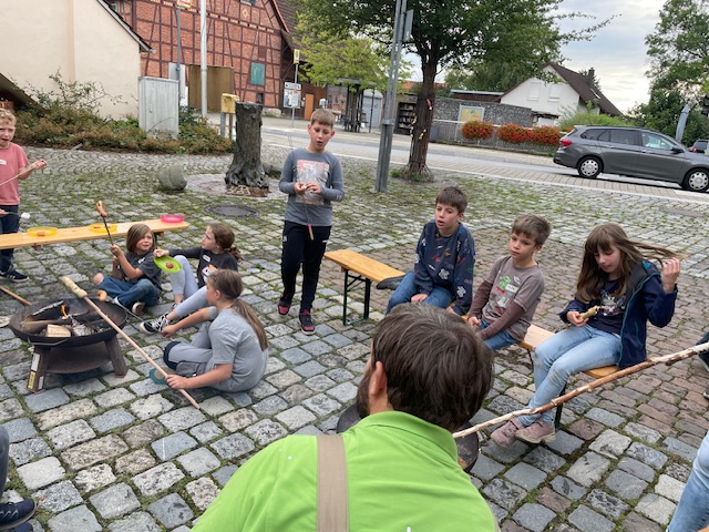 Gemeinsam ließen wir den Nachmittag schließlich noch an unseren Feuerschalen bei leckerem Stockbrot ausklingen. Ein rundum gelungener Tag für uns und die Kinder. Und sicherlich auch für zahlreiche Vögel in der Umgebung, die zukünftig unsere entstandenen Vogeltränken und Sitzgelegenheiten nutzen können!
